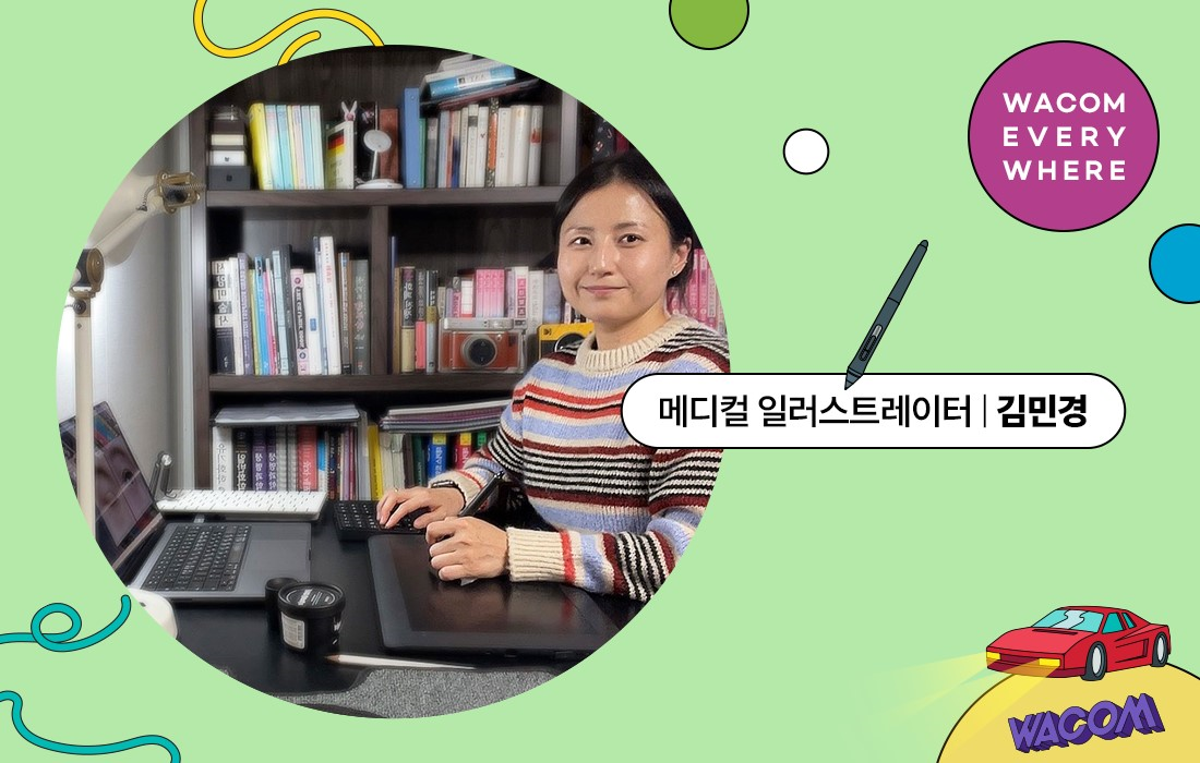 ‘메디컬 일러스트’라는 용어 들어 보셨나요? 흔히 일상이나 병원에서 사람의 얼굴이나 손발, 척추 등 신체 일부를 그려 놓은 그림을 쉽게 볼 수 있는데요. ‘메디컬 일러스트’로 불리는 이 그림은 복잡하고 어려운 의학 용어와 증상을 더욱 쉽게 환자에게 설명해 주는 ‘또 다른 언어’의 역할을 하고 있습니다. 의과학 분야의 복잡한 개념을 설명해야 되다 보니, 정확성, 신속함, 전달력이 메디컬 일러스트 분야에 있어 가장 중요한 가치라고 하는데요. 김민경 메디컬 일러스트레이터는 아직 일반인에게는 생소하지만, 10년 넘게 메디컬 일러스트라는 분야에서 전문성을 쌓아가고 있습니다. 우리 모두가 일상에서 유용하게 접하고 있지만 아직은 생소한 메디컬 일러스트 세계. Wacom everywhere의 열네 번째 주인공, 김민경 메디컬 일러스트레이터의 이야기입니다.