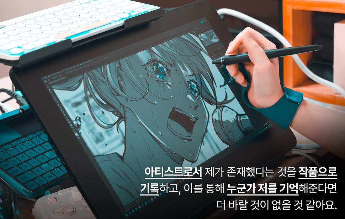 제가 아티스트로서 성장하기까지 와콤은 빼놓을 수 없는 존재입니다. 와콤이 50주년을 맞이했을 때, 저도 한 층 더 성장한 모습으로 축하할 수 있기를 바랍니다. 40주년 축하드립니다!