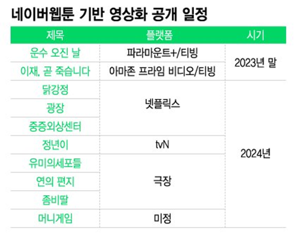 뿐만 아니라, 최근에는 성공적인 웹툰 IP를 다른 포맷으로 하나씩 확장을 하던 방식에서 잠재 가능성이 높은 웹툰 IP를 단번에 여러 포맷으로 빠르게 공개하는 형태로 IP비즈니스 방식의 변화도 이뤄지고 있답니다.