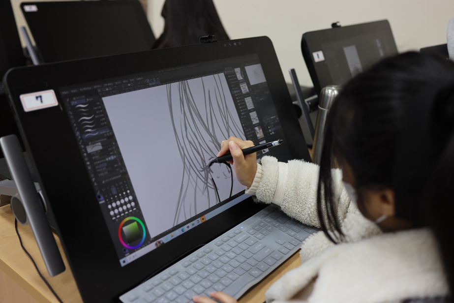 웹툰출판미디어과 1학년 진예원 학생은 “평소 펜 타블렛을 사용하다가 대학 입학 후 처음 신티크 프로 24를 사용해 보았는데 직관적인 작업은 물론, 기능적인 측면에서 훨씬 더 편리했다”며 “평일 수업 시간을 제외하고 개인적인 창작 작업이 필요할 때 자유롭게 실습실에서 와콤 타블렛으로 작업할 수 있다는 점도 매우 만족스럽다”고 설명했다.
