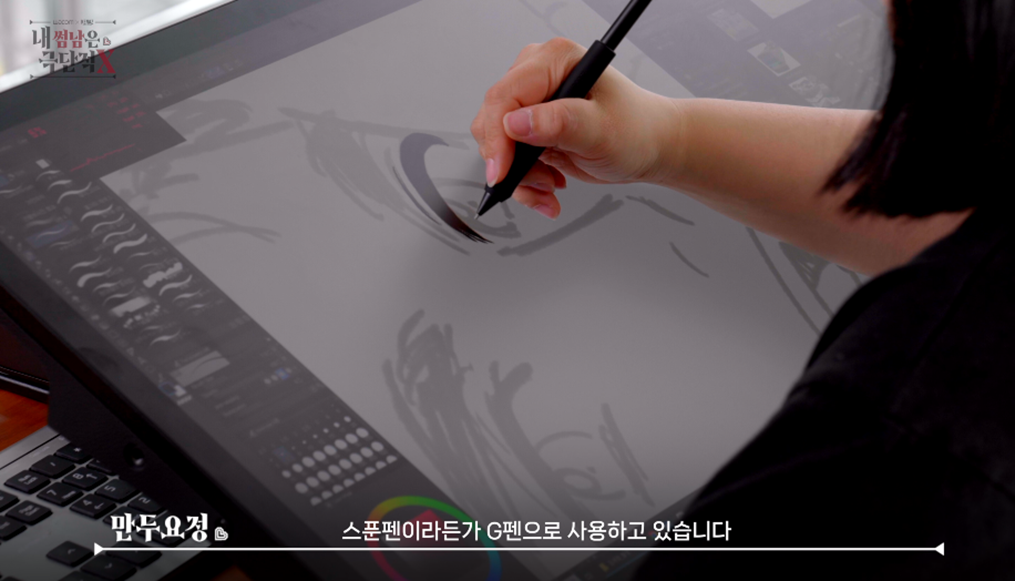 원래 저도 와콤 유저로 와콤 타블렛을 사용해 작업하고 있는데요. 오늘 사용하는 신티크 프로 27은 새로 출시된 기종이다 보니 베젤이 얇고, 액정과 액정 사이에서 느껴지는 간격이 좀 얇아진 것 같아 훨씬 사용하기 편리한 것 같아요. 펜이 디스플레이에 닿는 느낌도 조금 다른 것 같기도 하고요.