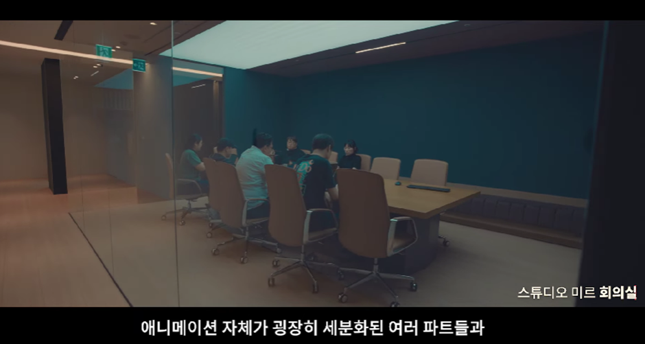프로젝트가 시작되면 항상은 아니지만 거의 대부분 하루의 시간을 미팅에 쓰게 되는 것 같아요. 애니메이션 자체가 굉장히 세분화된 여러 파트들과 협업을 하는 공동작업이다 보니까 파트 간의 작업공간이 굉장히 다양하거든요. 디자인 공간에서 아티스트들과 함께 작업을 하거나 에디팅룸에서 감독님, 스태프 분들과 함께 필름 리뷰를 할 때도 있어요.