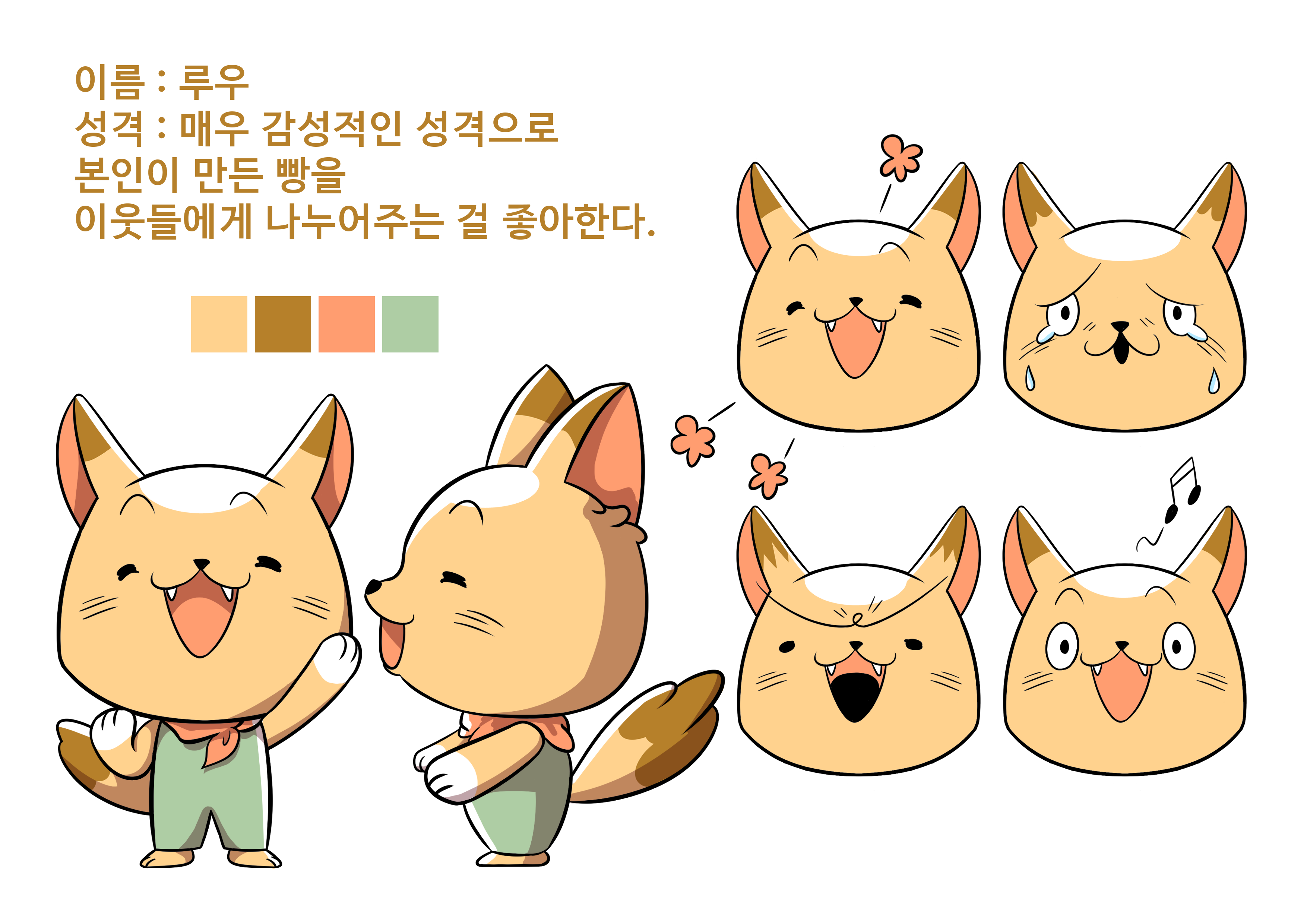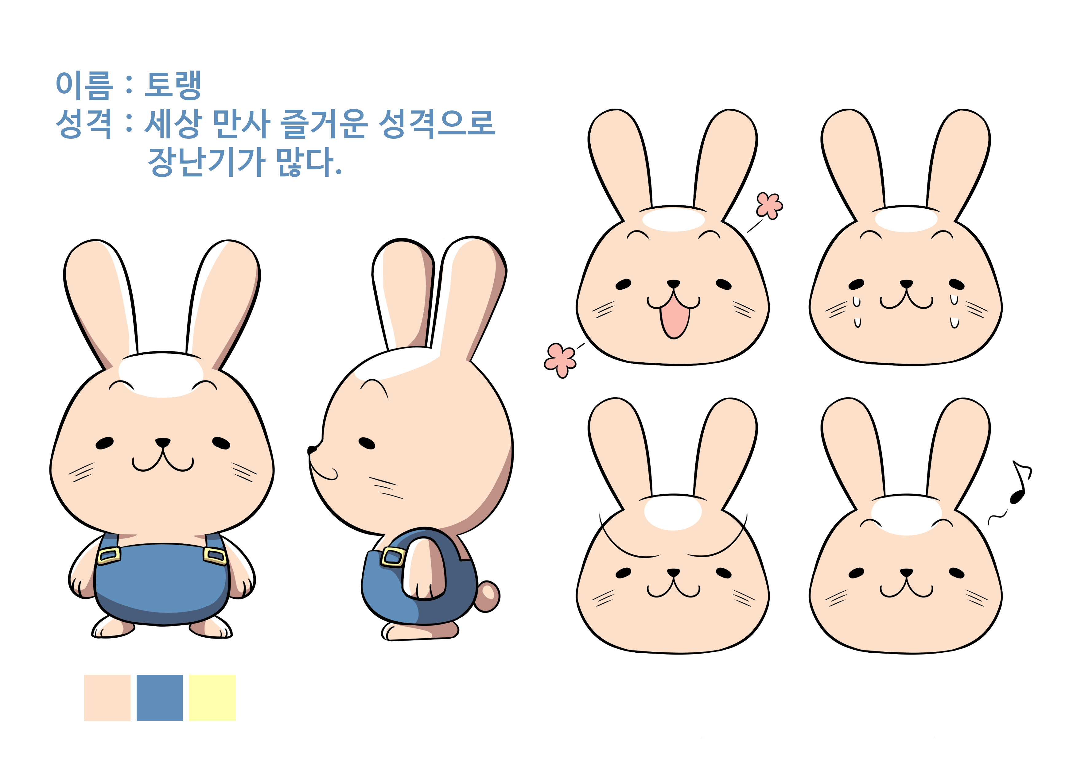 제가 이 수업에서 완성시킨 웹툰은 ‘토랭’ 이라는 토끼가 주인공으로 친구 여우 ‘루우’의 생일파티에 갔다가 선물로 인해 일어나는 해프닝을 그린 코믹 웹툰이었습니다. 각 캐릭터 설명을 간단하게 드리자면, 토끼 ‘토랭’은 세상 만사 즐거운 성격으로 장난기가 많은 친구예요. 여우 ‘루우’는 매우 감성적인 성격으로 본인이 만든 빵을 이웃들에게 나누어 주는 걸 좋아하는 친구고요. 마지막으로 새 ‘모앵’이는 평소 차분한 성격이지만 선을 넘는 일이 생기면 매우 언짢아 하며 기분이 변하는 캐릭터랍니다.