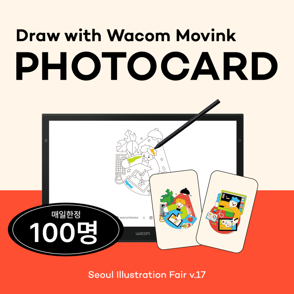와콤 최초의 OLED 타블렛 와콤 무빙크 앰베서더인 ‘모먼트시리즈’의 아트워크와 와콤 무빙크를 활용해 포토카드를 만들어보는 이벤트가 진행될 예정이에요.