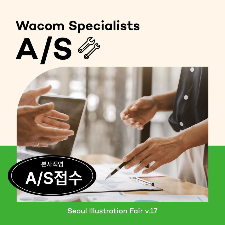 또한 행사 현장에서는 간단한 제품 진단 및 A/S 접수 등도 함께 진행, 평소 와콤 스페셜리스트와의 일대일 컨설팅을 원했던 유저들은 현장에서 보다 편리하게 상담 서비스를 이용할 수 있습니다. 마포구 상암동에 위치한 와콤 서비스센터까지 방문이 어려우셨다면 서일페 나들이 겸 간단한 제품 상담을 받아보세요. 친절하기로 소문난 와콤 스페셜리스트가 직접 상담과 간단한 진단, 원하신다면 제품을 입고해 수리 후 보내드립니다.