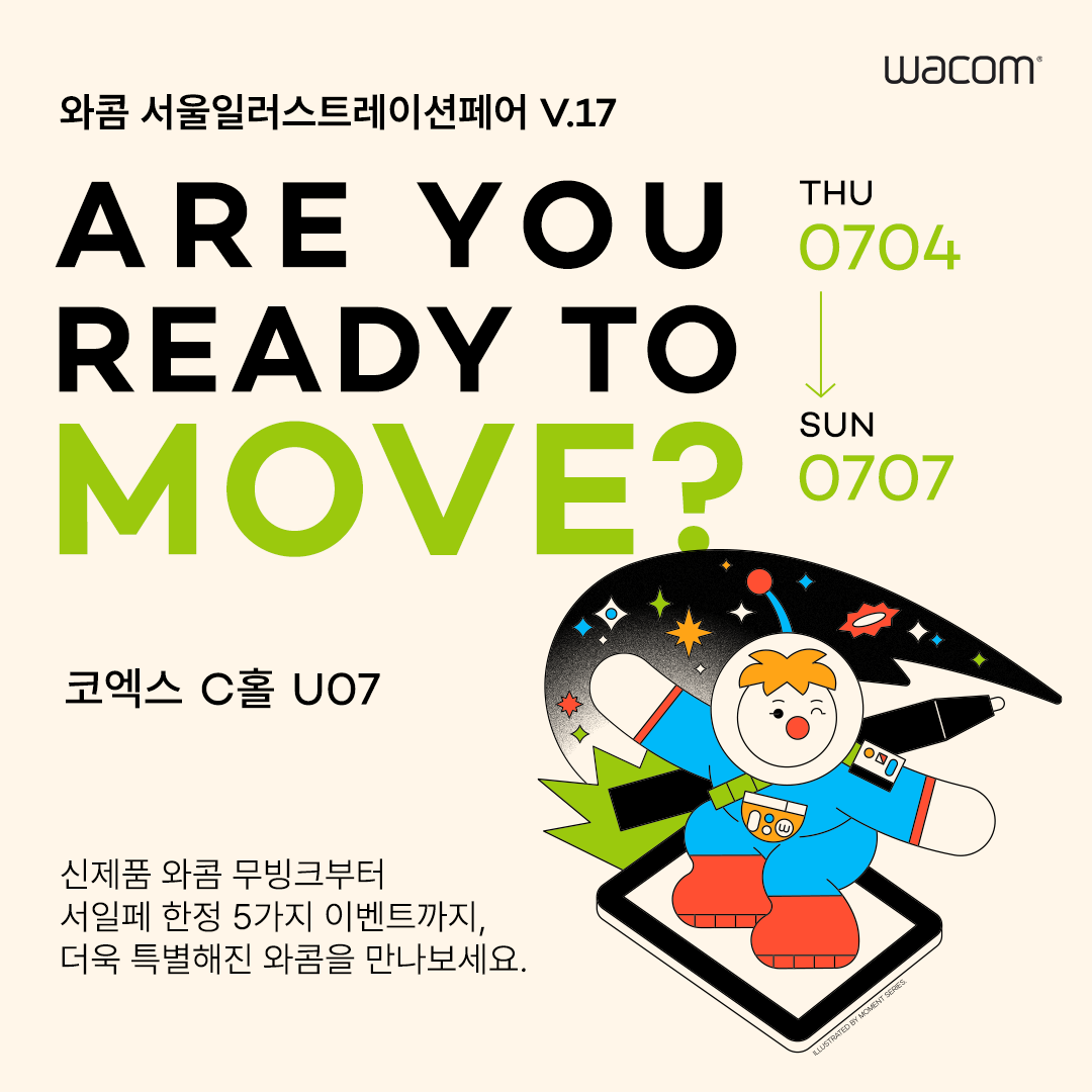7월 4일부터 7일까지, 4일간 코엑스 C 홀 와콤부스 U07에서 10시부터 6시까지 여러분을 기다릴게요🫡