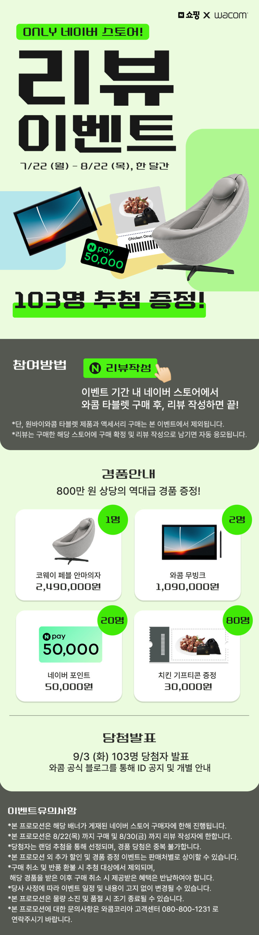 한달간 진행되었던 와콤 리뷰 이벤트에 참여하신 네이버 스토어 구매고객 모두 모이세요!