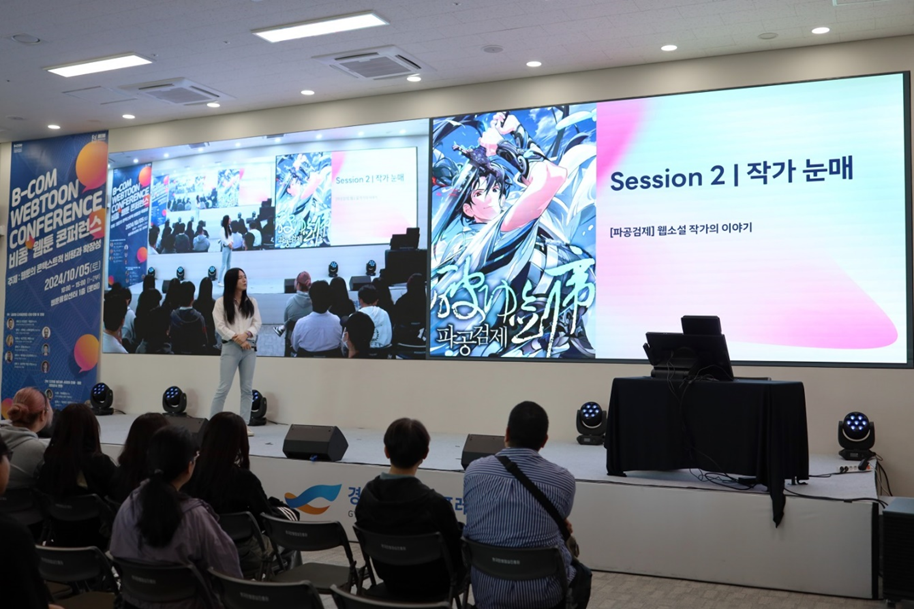 바로 이어진 두 번째 세션은 웹소설 ‘환생무적’, ‘파공검제’ 등 활발한 작품활동을 하고 계시는 눈매 웹소설 작가의 ‘웹소설 작가 이야기’입니다. 작가님께서는 웹소설 작가로 활동을 시작하게 된 스토리부터 웹소설 생태계에 대한 현업 실무자의 인사이트를 가감 없이 풀어주셨는데요. 진심 어린 조언과 함께 전달되는 작가님의 스토리를 통해 웹소설 작가에 대해 다시 한번 생각해 보는 계기가 되셨을 것 같네요.