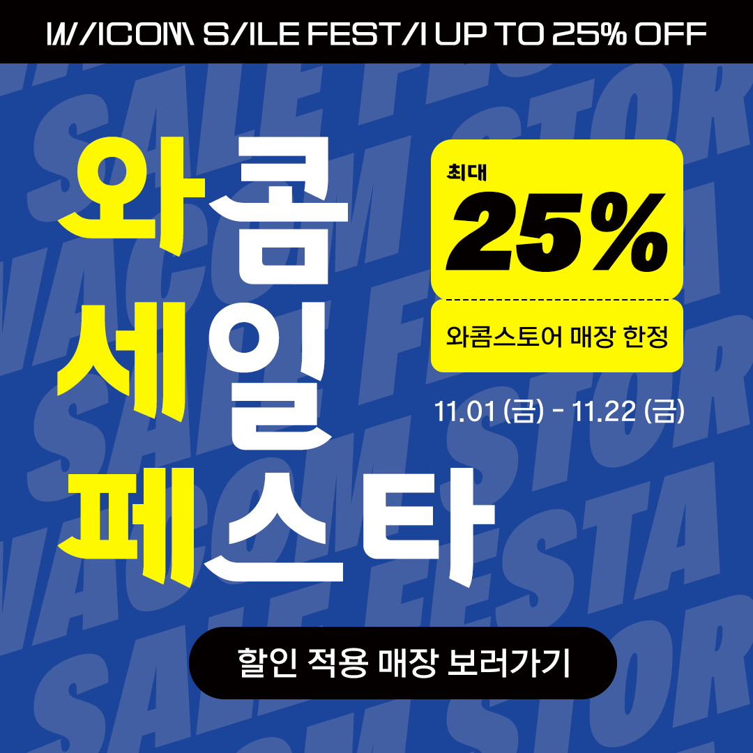 국내 쇼핑 축제 기간을 맞아 와콤은 오프라인 매장인 전국 13곳의 와콤스토어 매장에서 와콤 타블렛 전 품목 및 액세서리 구매 시 특별 할인 혜택을 제공하는 ‘와콤 세일 페스타’가 열립니다.