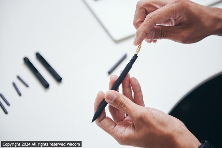 프로펜 3를 세상에 선보이며 와콤은 그 목표에 더 가까워지는 비약적인 발전을 했습니다. 와콤의 플래그십 펜인 프로펜 3은 그립의 굵기, 사이드 스위치 타입, 펜의 무게 중심까지 작업 스타일에 맞게 부품을 교체함으로써 자유롭게 나만의 펜으로 커스텀 할 수 있죠. 더 길고 미세해진 펜심, 더 얇고 매끈해진 펜 디자인은 사용자가 화면 위에서 펜을 쓸 때 더 넓은 시야를 확보해주고 보다 자연스러운 펜 드로잉 느낌을 선사합니다.