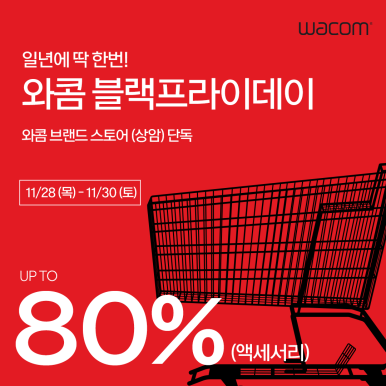 코리안 세일 페스타 기간 중 함께한 와콤 세일 페스타에 이어 연중 최대 규모의 쇼핑 행사인 블랙프라이데이를 맞아 와콤 타블렛 전 제품은 물론 액세서리까지 폭넓은 할인 혜택을 제공하는 ‘와콤 블랙프라이데이’ 프로모션을 준비했어요.