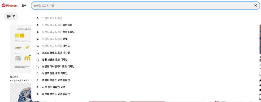 핀터레스트 내에서는 탐색 탭을 통해 쉽게 원하는 콘텐츠를 검색할 수 있는데요. 예를 들어 ‘브랜드 로고 디자인’을 검색창에 입력하면 자동완성기능이 적용돼 다양한 검색어가 뜨며, 사용자가 미처 생각하지 못했던 더욱 폭넓은 영감과 아이디어를 얻을 수도 있습니다. 디자인 분야와 함께 패션, 여행 등 모든 영역에서의 검색이 가능, 일러스트를 비롯한 영상, 사진 등 다양한 종류의 콘텐츠가 업로드 된다는 점도 참고 부탁드려요.