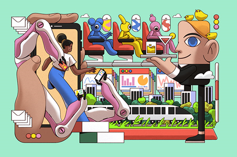 이와 함께 일러스트레이터 ‘Mojo Wang’의 작품도 젊은 세대에게 큰 인기를 얻고 있는데요. 작품 속 오브제 및 구성요소를 왜곡해 비현실적인 요소를 극대화함으로써 일러스트레이션의 재미를 한층 더 배가시킨 사례라고 할 수 있습니다.