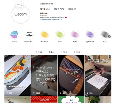 와콤 또한 공식 소셜 플랫폼인 인스타그램과 유튜브를 활용해 다양한 숏폼 콘텐츠를 선보이고 있습니다. 와콤 타블렛 입문자부터 전문가까지 활용할 수 있는 타블렛 사용 팁부터 전 세계 수많은 크리에이터들의 작품 드로잉 튜토리얼, 와콤 타블렛 및 액세서리 프로모션, 와콤 주최의 다양한 프로그램 등 디지털 드로잉에 관심 있는 모두에게 유용한 숏폼 콘텐츠를 직접 제작하고 있답니다. 와콤의 최신 정보, 튜토리얼 및 드로잉 팁이 궁금하다면, 아래 와콤 공식 계정을 방문해 빠르고 간편한 숏폼으로 다양한 인사이트를 얻어보세요.