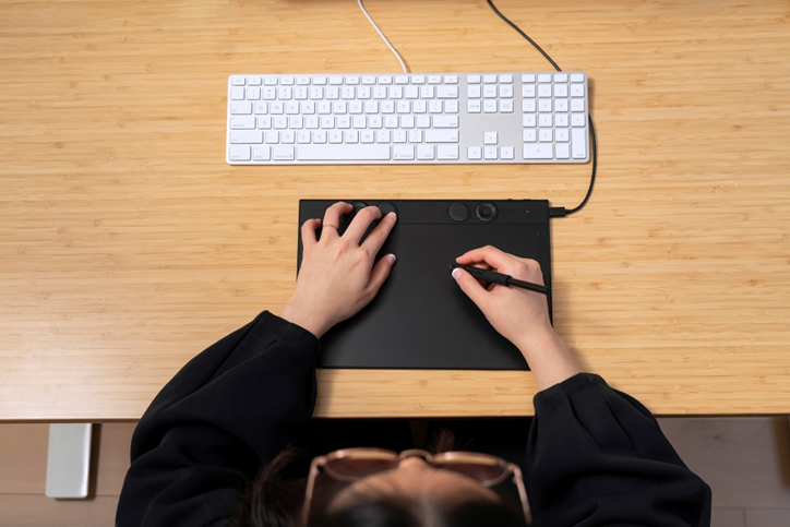 이와 함께 펜 타블렛 위쪽으로 키보드를 위치해두고 드로잉 할 시에는 키보드와 익스프레스 키 및 휠 사이의 동선이 매우 짧아져 엄지 손가락으로만 버튼 조작이 가능하며, 손을 거의 이동하지 않으면서 다양한 기능을 활용할 수 있어 쾌적한 사용감을 제공하죠.