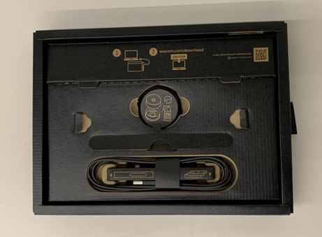 패키징을 열고 제품 본체를 꺼내면 박스 안에는 펜 타블렛 사용에 도움되는 다양한 액세서리들이 들어있습니다.