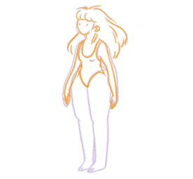 예를 들어, 슬림한 모습의 사람을 그리고 싶다면, 원래 스타일에서 턱을 더 뾰족하게, 어깨를 더 좁게, 배와 팔다리를 더 얇게, 그리고 몸과 팔다리 사이에 공간을 주는 등의 선의 변형을 통해 표현할 수 있죠.