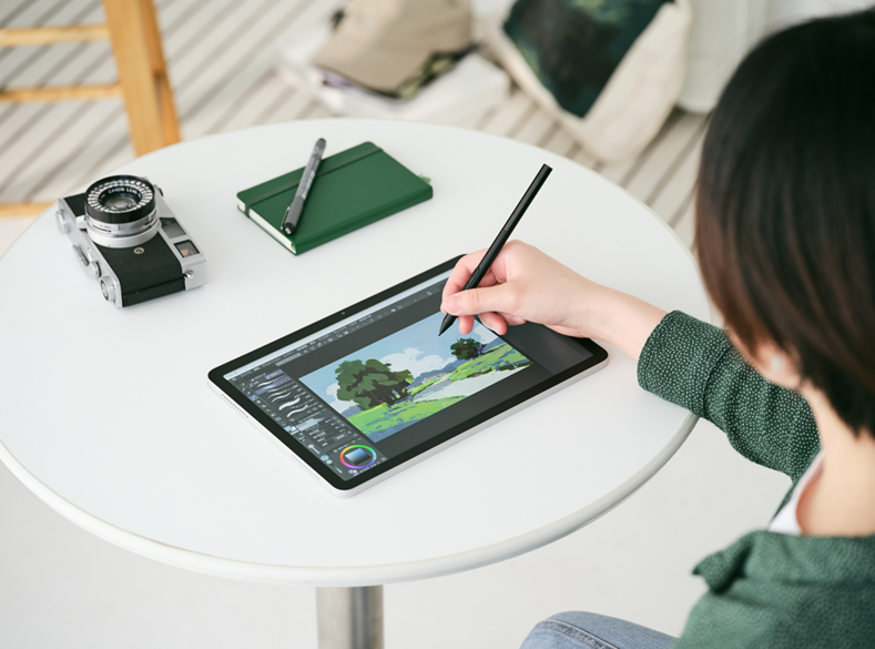 기본 탑재된 와콤 캔버스(Wacom Canvas) 앱은 자유로운 스케치와 간단한 일러스트 작업을 지원합니다. 이와 함께 창작 전문가들이 사용하는 소프트웨어의 입문 버전인 ‘클립스튜디오 페인트 데뷔(Clip Studio Paint DEBUT)’ 2년 라이선스를 제공해, 4만 개 이상의 브러시와 만화, 3D, 애니메이션 기능을 활용한 다양한 작업이 가능한 것도 특장점입니다.