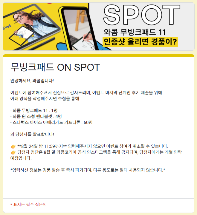 **이벤트 관련 문의사항은 와콤 고객센터(080-800-1231)로 확인해주세요.