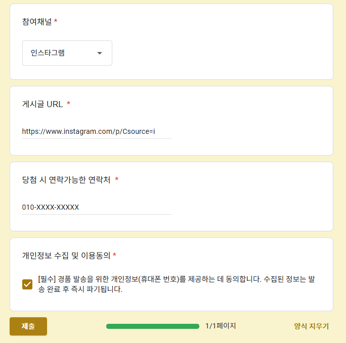 ③ 이벤트 전용 QR코드에 접속해 업로드 한 SNS 포스팅 링크를 제출하면 이벤트 응모 완료
