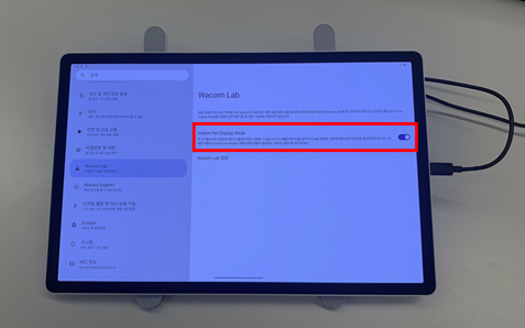 사용자의 PC에 드라이버를 다운로드 받은 후, 무빙크패드로 돌아와 설정의 ‘WacomLab’에서 인스턴트 펜 디스플레이 모드를 켜주면 준비 완료입니다.