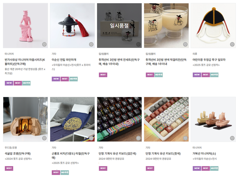 이러한 흐름 속에서 특히 눈에 띄는 분야가 웹툰과 애니메이션, 캐릭터 IP 기반 굿즈입니다. 캐릭터 굿즈는 일상에서 활용 가능한 라이프스타일 아이템으로 확장되는 중인데요. 머그컵과 문구류, 의류와 데스크 액세서리처럼 실생활에서 자연스럽게 사용할 수 있는 제품들이 늘어나며 팬덤을 넘어 일반 소비자까지 수요가 확대됐습니다. 글로벌 플랫폼을 통해 해외 독자층을 확보한 K-웹툰 역시 자연스럽게 굿즈 시장으로 확장됐습니다. 인기 캐릭터를 활용한 아크릴 스탠드, 문구류, 의류는 물론 작품의 세계관을 담은 한정판 굿즈는 팬들에게 콘텐츠 경험을 더욱 극대화해 주기도 합니다.