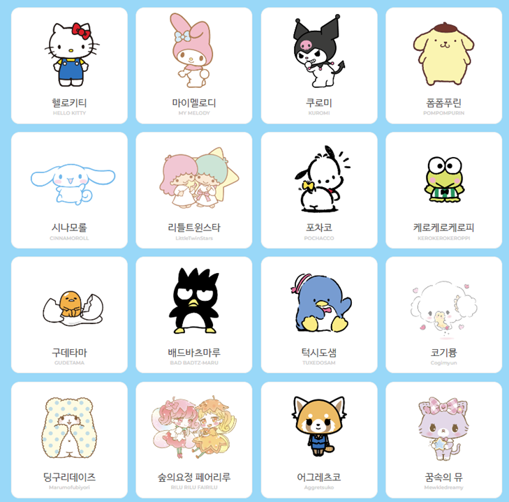 국내 캐릭터 선호도 3위는 ‘산리오 캐릭터즈’인데요. 대표적으로 헬로키티, 마이멜로디, 쿠로미 등이 있습니다. 산리오 홈페이지에는 각 대표 캐릭터의 생년월일과 함께 주요 특징이, 주변 캐릭터 또한 성격, 좋아하는 것 등과 같은 스토리가 설명돼 있어 캐릭터를 한결 쉽게 이해할 수 있습니다. 스토리텔링이 중요한 시대 트렌드에 맞춰 캐릭터에 대한 정보를 전달함으로써 사람들이 캐릭터에 대한 호감을 상승시킨 결과가 아닐까 싶습니다.