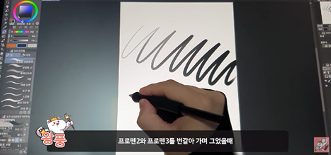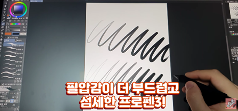 또한, 와콤 프로 펜 2와 프로 펜 3을 번갈아 가며 그었을 때 필압감이 더 부드럽고 섬세하다는 느낌을 받았습니다.