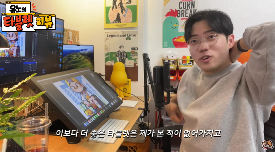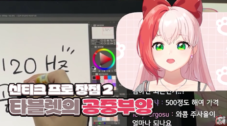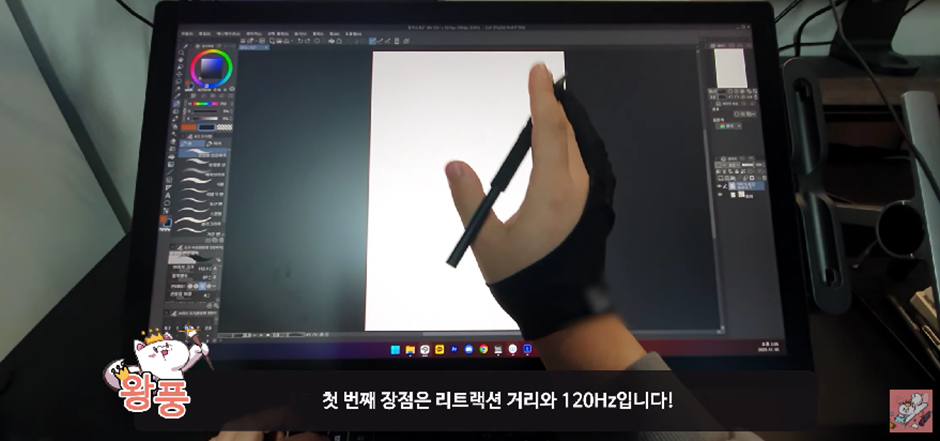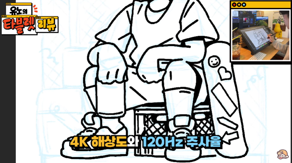 신티크 프로 22를 활용해 제 캐릭터 ‘춘우’를 그려보며 제품의 장단점을 파악해 볼게요. 실제 이렇게 사용해 보니 확실히 구형 프로 제품보다 좋아진 점이 체감되네요. 120Hz로 펜 드로잉도 부드럽고 반응 속도도 좋았습니다.