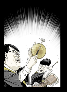 제 만화가 모두를 만족시킬 수 없다는 건 잘 알고 있습니다. 하지만 코미디 장르를 '일부러 찾아보시는' 독자분들께는 '어느 순간의 무언가'로 희미하게 나마 기억될 작품을 만들고 싶습니다. 이 분야 올타임 고전이라 예시로 들기가 황송합니다만, 고병규 작가님의 -2000년대 이후 한국 코미디 서사만화의 구조를 확립 시킨 '출동! 먹통X' 처럼요.