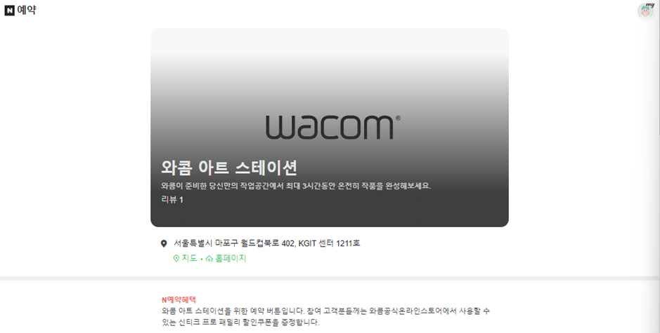 와콤 프리미엄 액정 타블렛 ‘신티크 프로 패밀리(17/22/27)’ 시리즈를 체험해 보고 싶은 모든 창작자, 창작 지망생, 학생을 위한 ‘와콤 아트 스테이션’ 프로그램. 누구나 네이버 사전 예약을 통해 와콤 브랜드 쇼룸에 위치한 아트 스테이션 작업 공간에서 신티크 프로 시리즈를 일정 시간 동안 온전히 사용해 볼 수 있는데요. 벌써 많은 분들이 프로그램에 참여해 신티크 프로의 성능을 경험한 것은 물론 와콤이 준비한 선물들을 받아 가셨답니다. 와콤 아트 스테이션에 참여하고 싶은데, 방법을 모르거나 어려운 분들께서는 오늘 게시물을 주목해 주세요. 와콤 아트 스테이션에 참여할 수 있는 네이버 예약 방법부터 차근차근 하나씩 설명해 드리겠습니다.