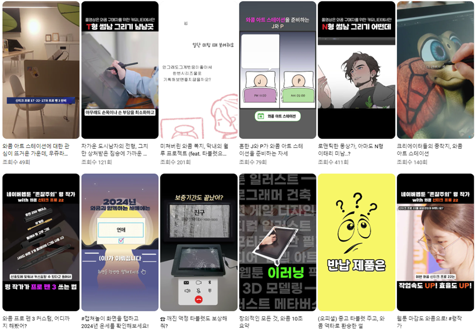 와콤 유튜브 숏츠 ‘인기’