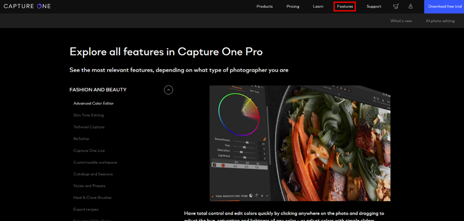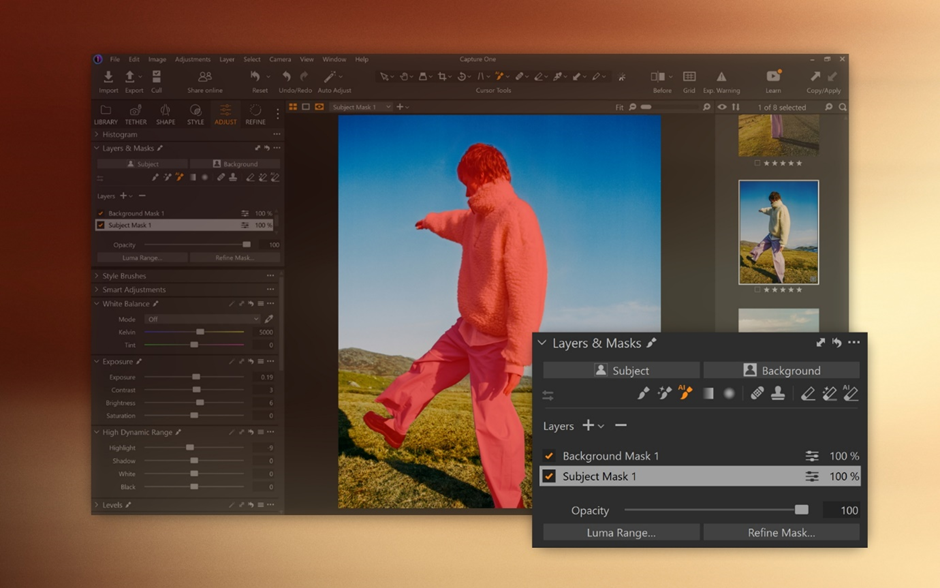 캡쳐 원 프로그램은 캡쳐 원 사내 전문가가 미세하게 조정한 RAW 컨버터로 약 600대의 카메라와 700개 이상의 렌즈에 적합하게 색상을 조정, 맞춤 설정할 수 있게 해주는 프로그램입니다. 고품질의 색상으로 캡쳐, 편집 및 완벽한 스킨 톤을 구현할 수 있으며, 모바일 화면에서도 사실적이면서 섬세하게 색상이 보정돼 보다 전문적인 사진 편집 작업이 가능합니다.