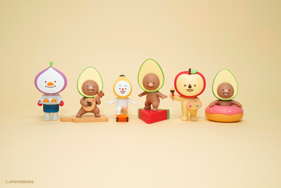 이후, 캐릭터 브랜드로 좀 더 디벨롭 하기 위해 ‘아보’의 친구들을 만들었는데, 아트토이는 3D로 볼 수 있는 제품이기 때문에 과일의 단면을 이용해 앞뒤가 다른 반전 매력을 주는 디자인이 적합했어요. 또 실물로 책상에 놓였을 때 눈에 띌 수 있도록 다채로운 컬러 조합을 만들게 되면서 탄생하게 된 서브 캐릭터들이 바나미(바나나), 애피(사과), 오니(적양파) 등입니다.