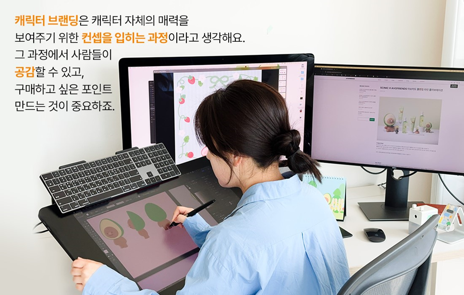 어린이들의 전유물이었던 캐릭터가 어른이(‘어른’과 ‘어린이’의 합성어)까지 모두 사랑하는 문화이자 트렌드가 됐죠. 누구나 한 번쯤 캐릭터 굿즈를 구매하거나, 본인이 좋아하는 캐릭터 관련 문화를 소비한 경험이 있을 텐데요. 이처럼 캐릭터가 ‘요즘 문화’로 급부상하면서, 캐릭터의 활용 역시 무궁무진 해졌습니다. 패션, 뷰티, IT, 스포츠까지 전 영역에서 캐릭터 IP를 활용한 마케팅 사례가 증가하는가 하면, 아이들의 장난감을 넘어 어른이들에게 감성과 세계관을 선사하는 키덜트 문화로 자리 잡고 있으니까요. 와콤 에브리웨어 서른 한 번째 주인공, 작가 효샤도 자신이 좋아하던 ‘피규어’를 통해 ‘아보프렌즈’라는 캐릭터 브랜드를 런칭하며, 인형, 메모지, 핸드폰 케이스, 아트토이 등 다양한 굿즈를 제작하고 있는데요. 캐릭터를 제작하는 작가이자 캐릭터 브랜드를 운영하는 대표가 직접 이야기하는 캐릭터 브랜딩에 관련한 모든 것. 캐릭터 브랜드 작가 효샤의 스토리를 주목해 주세요.