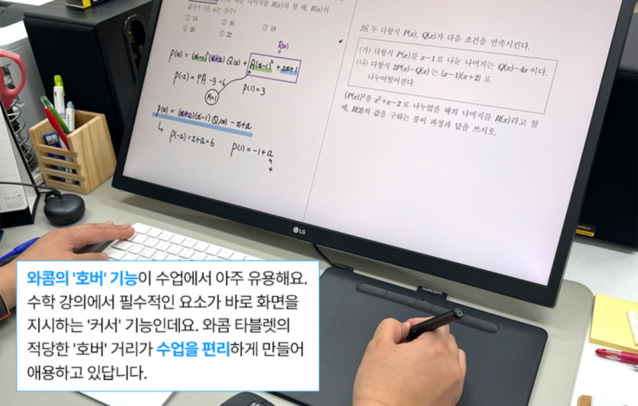 수학 강의에 적합한 와콤 타블렛의 ‘호버 기능’