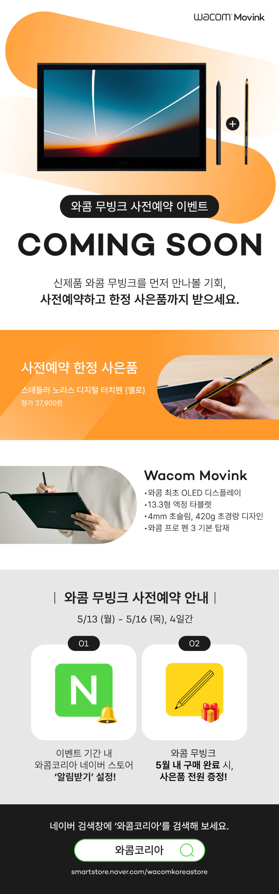 와콤 무빙크 사전예약 이벤트는 13일부터 16일까지, 단 4일간만 진행됩니다.