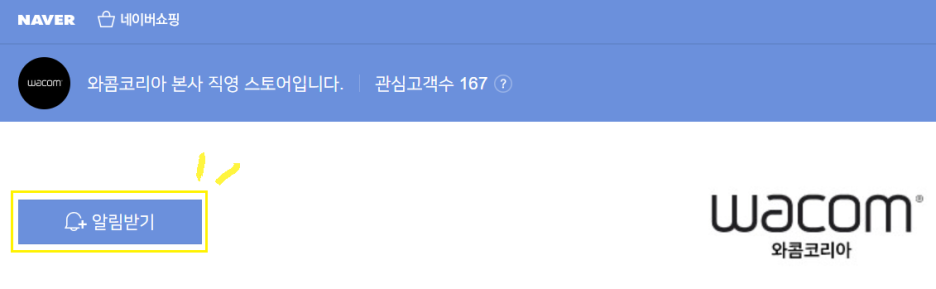 와콤코리아 공식 네이버 스토어의 [알림받기]버튼을 누르기만 하면 끝.