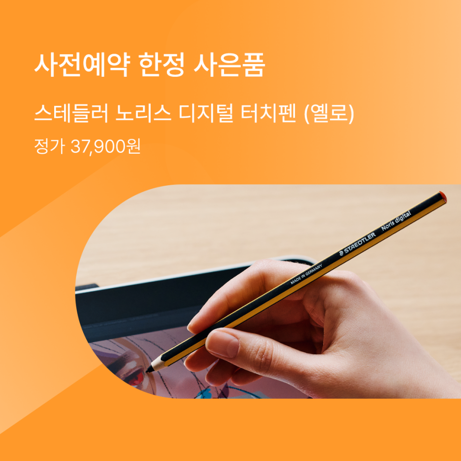알림받기를 완료한 뒤 5월 31일까지 제품 구매를 하시는 고객분들에게는 아날로그의 감성을 담은 디지털 펜 [스테들러 노리스 디지털 펜]을 드립니다.