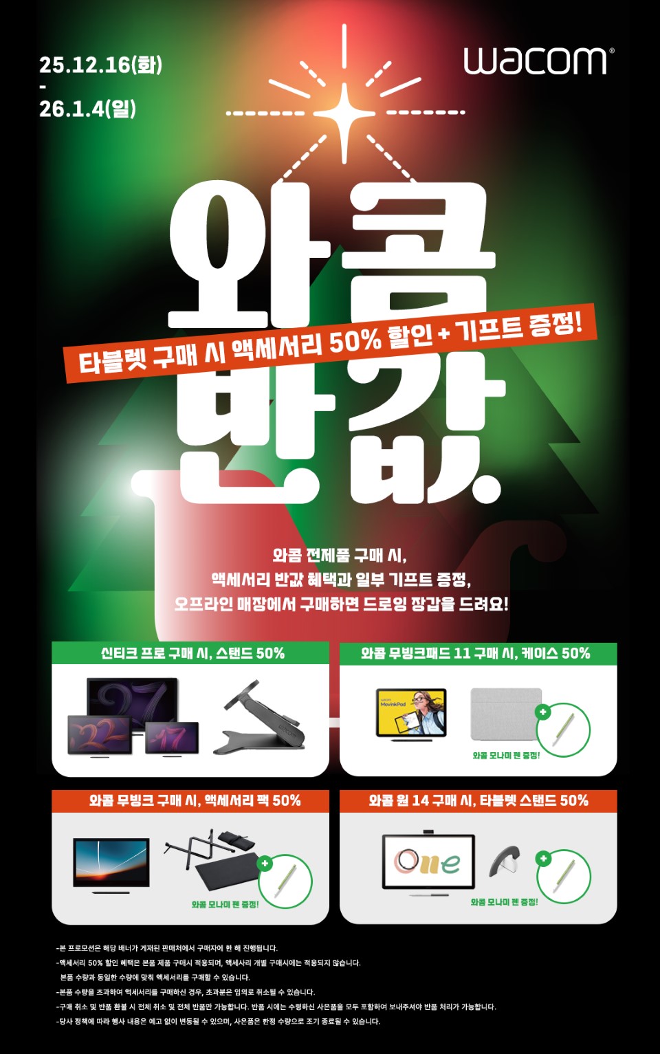 A/S문의 공식구매처 와콤 판매점 드라이버 다운로드 번들 소프트웨어 Newest MORE + News 와콤, 연말 맞이 ‘홀리데이 프로모션’ 전 제품군 대상 실시 Artist's Note 디지털 창작 표류기 Part 2 — 스토리텔링의 새로운 문을 열다 How to Use 무빙크패드 시리즈의 특별한 기능, 인스턴트 펜 디스플레이 모드 Product MORE + Product 와콤 원 펜 타블렛을 언박싱 해보자 (feat. Plug & Play) Product 새로운 와콤 원, 무엇이 달라졌을까? Product ‘타알못’이라도 야, 너두 쉽게 쓸 수 있어! (feat. 와콤 원 12 언박싱) Artist's Note MORE + Artist's Note 디지털 창작 표류기 Part 2 — 스토리텔링의 새로운 문을 열다 Artist's Note 디지털 창작 표류기 Part 1 — 스토리텔링에서 길을 찾다 Artist's Note 내가 그리고 싶은 이야기를 사람들에게도 와닿게 만들려면 TV